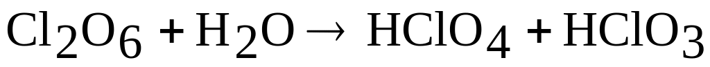 Оксид хлора (VI) – сильный окислитель. Взаимодействует с водой, со щелочью, при этом протекают реакции диспропорционирования: