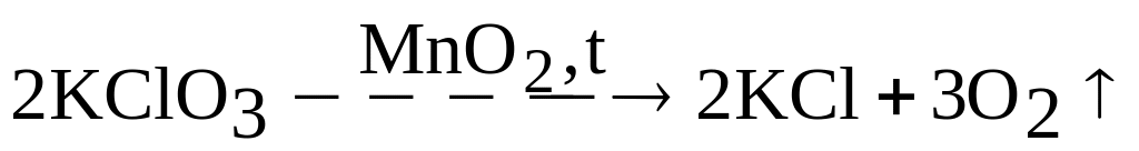 В присутствии катализатора хлорат калия разлагается с выделением кислорода: