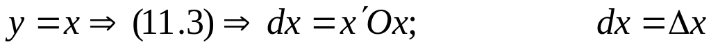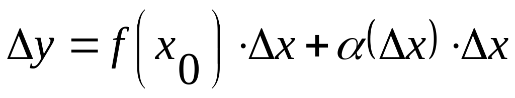 Диференціалом функції y=f(x) називають головну лінійку по ∆x частину приросту (11.2) і записують так: