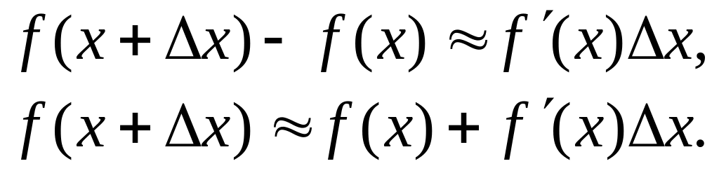 Ця формула застосовується для наближеного обчисленя значень функції при малому прирості x незалежної змінної x.