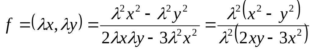 f(λx,λy)=4λ²-λyλx+λy≠ f(x,y) – не однорідна.