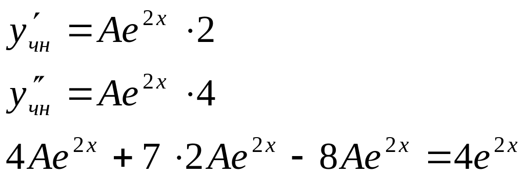 Знайдемо А так, щоб дана функція була розв`язком неодноріного рівняння. Для цього підставимо її в рівняння: