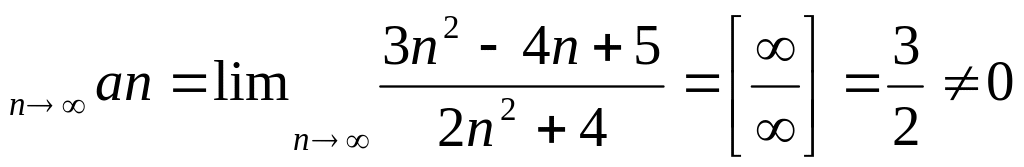 c) У цьому випадку не виконується необхідна умова збіжності числового ряду тому, що