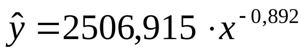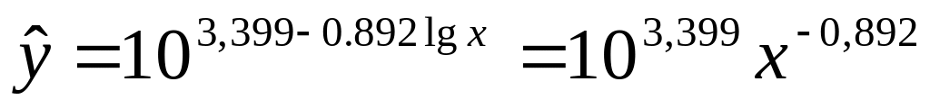 Так как в уравнении степенной регрессии параметр b совпадает с коэффициентом эластичности, то уравнение регрессии можно проинтерпретировать следующим образом: с увеличением объема капиталовложений на 1% объем выпускаемой продукции уменьшится в среднем на 0,892%.