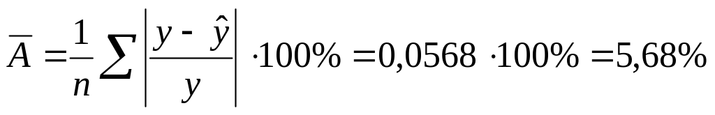 Проверить значимость уравнения регрессии с помощью F-критерия Фишера (α=0,05) и с помощью средней относительной ошибки аппроксимации. Сделать вывод о качестве модели.