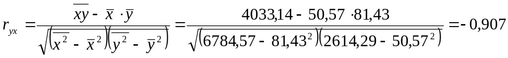 Вариация результативного признака у (объема выпуска продукции) на 83,6% объясняется вариацией фактора х (объемом капиталовложений).