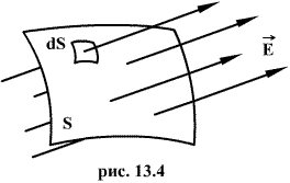 Для вычисления потока вектора E необходимо разбить площадь S на элементарные площадки dS, в пределах которых поле будет однородным (рис.13.4).