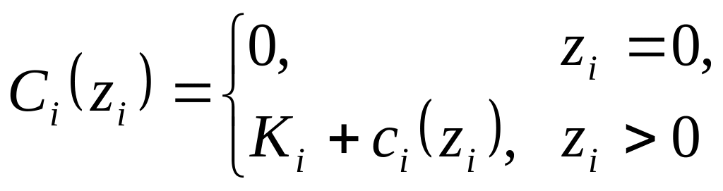 Функция ci(zi) представляет интерес только тогда, когда затраты на покупку единицы продукции изменяются во времени или существуют разрывы цены.