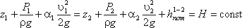 Кроме этого в уравнении появились еще два коэффициента α1 и α2, которые называются коэффициентами Кориолиса и зависят от режима течения жидкости ( α = 2 для ламинарного режима, α = 1 для турбулентного режима ).