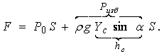 Сумма в скобках в последнем выражении является абсолютным давлением в центре тяжести рассматриваемой произвольной площадки. Таким образом, можно сделать вывод: полная сила давления жидкости на плоскую стенку равна произведению её площади на величину гидростатического давления в центре тяжести этой стенки.