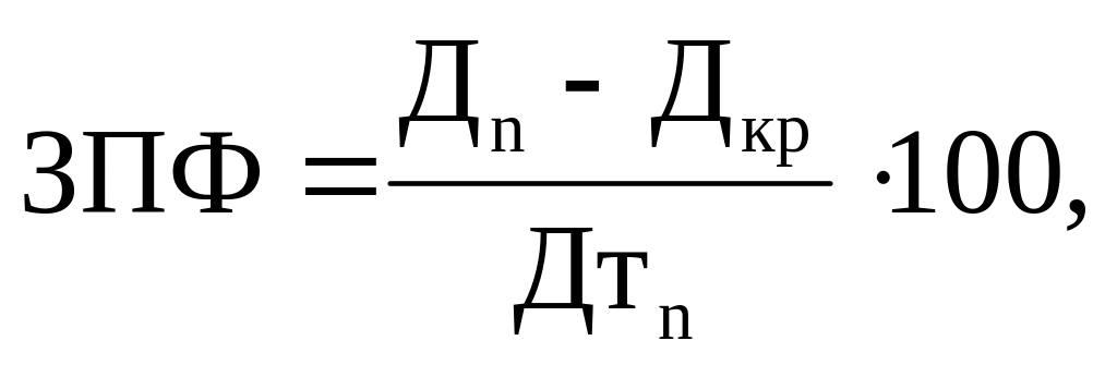 На основании рассчитанных величин дохода и критического дохода от торговой деятельности можно рассчитать запас финансовой прочности (т.е. процент, на который план дохода от торговой деятельности обеспечивает безубыточную работу торговли) по следующей формуле: