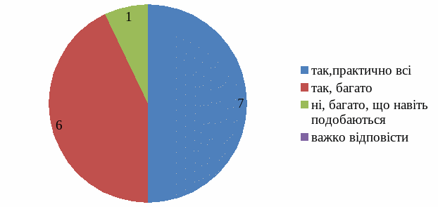 На питання «Чи допомагає Вам реклама орієнтуватися при покупці товарів і послуг» так – 57,14%, ні – 14,26%, важко відповісти – 28,6%