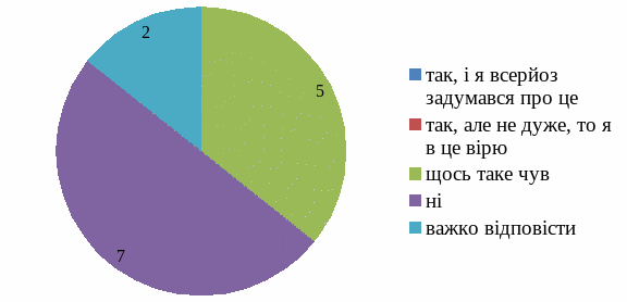 На питання «Чи чули Ви про ефект 25 кадру?» респонденти відповіли: Важко відповісти – 14,26%, щось таке чув – 31,7%, ні – 54,4%