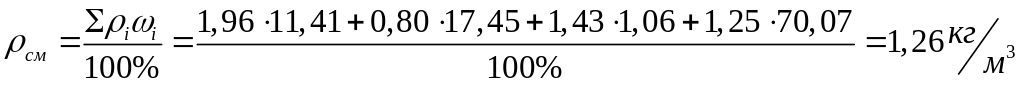 Плотность каждого компонента находим, разделив молекулярную массу на объём, занимаемый одним килограмм-молем компонента (22,4 м3).