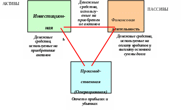 инвестиционная деятельность. Денежные средства используются на приобретение активов с долгосрочным потенциалом для получения дохода (например, производственного оборудования), а при продаже таких активов происходит поступление денежных средств. Инвестиционная деятельность, предполагающая расширение и модернизацию производственных мощностей, в целом приводит к оттоку денежных средств.