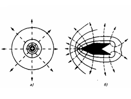 точечного заряда — радиальные прямые.