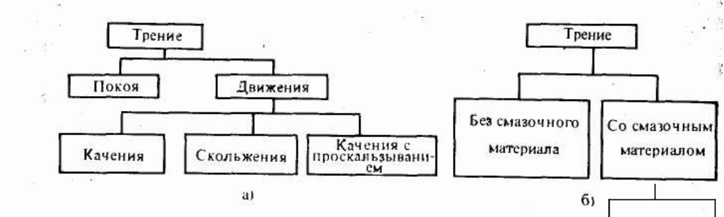 По наличию и характеру движения различают трение покоя и трение движения. По наличию смазки трение без смазочного материала и со смазочным материалом (см. рис. 5.1. ГОСТ 27674)