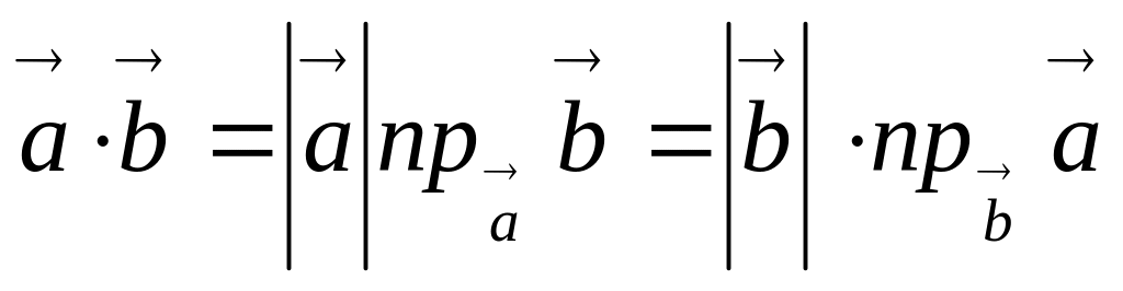 Скалярний добуток двох векторів дорівнює модулю одного з них, помноженому на проекцію другого вектора на напрям першого: