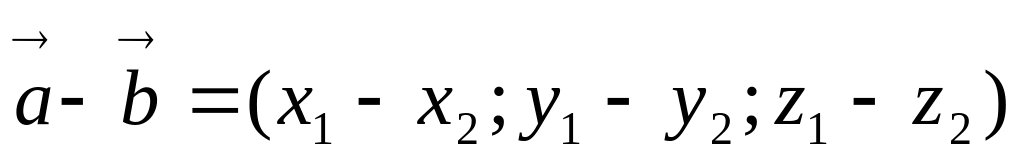 координати різниці двох векторів дорівнюють різницям відповідних координат цих векторів, тобто