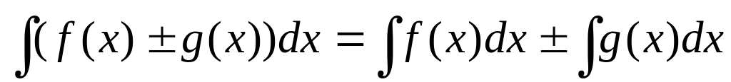 Невизначений інтеграл від алгебраїчної суми двох неперервних функцій дорівнює алгебраїчній сумі інтегралів від цих функцій: