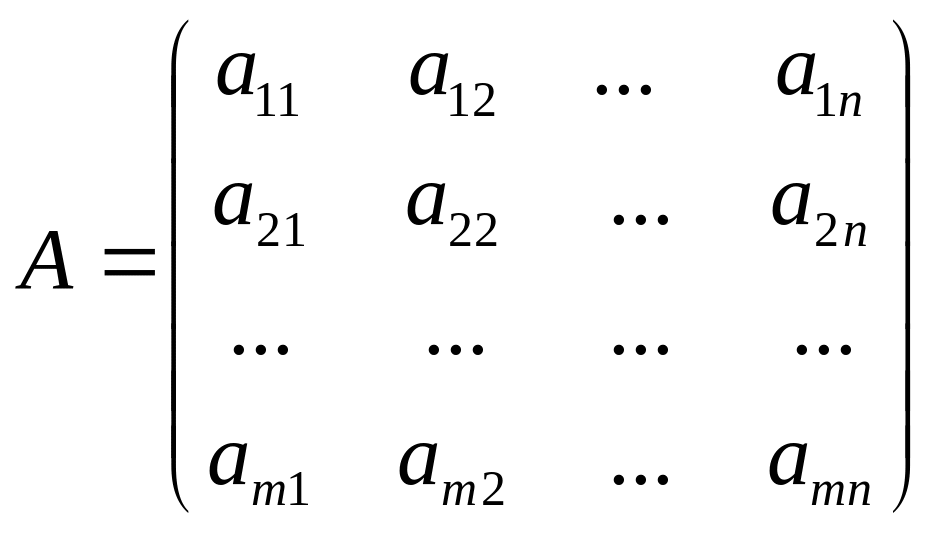яка складається з m рядків і n стовпчиків. Якщо m = n, то матриця називається квадратною; якщо m = 1, то маємо матрицю – рядок; якщо n = 1 – матрицю – стовпчик.