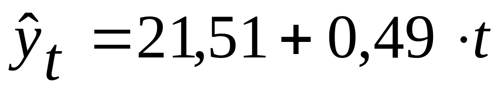 1) Для определения формы тренда проанализируем показатели анализа динамики, рассчитанные в «Задание 2» и представленные в табл. 2.4 (см. тему 2). Из таблицы 2.4 видно, что абсолютные приросты практически постоянны, поэтому в качестве уравнения тренда выбираем линейную функцию: .