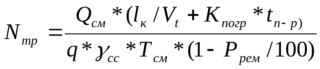 Количество транспортных единиц может быть определено по одной из следующих формул: