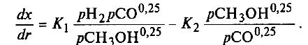 Для синтеза используют смесь с соотношением СО:Н2 1,0:1,5 или 1,0:2,5, очищенную от пентакарбонила железа в фильтре-адсорбере, заполненном активным углем. Скорость реакции определяется адсорбцией водорода на втором этапе каталитического процесса и может быть вычислена по уравнению Темкина: