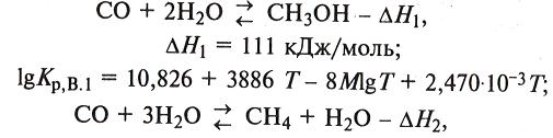 Из протекающих семи химических превращений - одно целевое и шесть побочных, часть из них может быть использована Для получения сопутствующих продуктов, прежде всего метана [уравнения (1) и (2)]: