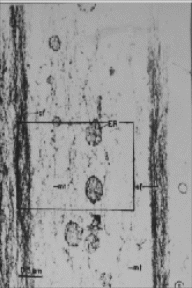 (в): Миофибрилла. Метки с коллоидным золотом: большого размера – к голому миозину, малого размера – к альфа-актину.