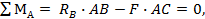 Обозначим: т.А – неподвижная шарнирная опора, т. В – подвижная шарнирная опора, С – точка приложения силы.