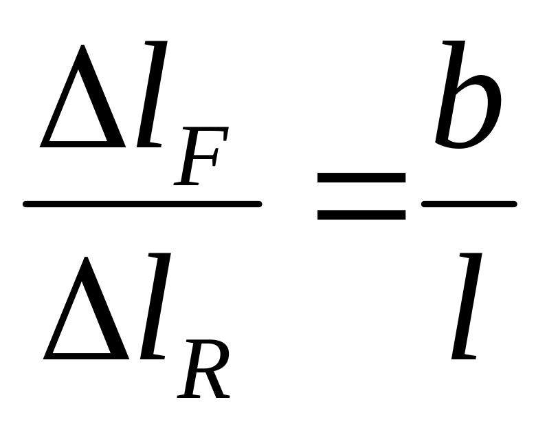 Перемещение точки приложения силы (без учета изгиба балки) найдется из пропорции: