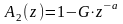 Во второй процедуре с учетом того, что основной тон характеризуется всего двумя параметрами, - амплитудой и периодом, передаточная функция фильтра удаления ОТ A2(z) описывается более простым выражением