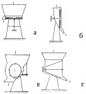 а – вертикально - дисковая корнерезка; б - горизонтально-дисковая корнерезка; в - барабанная коническая корнерезка; г - барабанная корнетёрка - дробилка