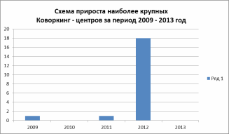 Эти данные позволяют увидеть что пик прироста – коворкинг приходится на 2012 год. Тенденция развития популярности данного направления очевидна и является положительным фактором относительно открытия коворкинг центра в Челябинске.