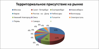 Данные из диаграммы приведенной выше, говорят о том что преобладающее присутствие на рынке коворкинг-центров территориально представлено такими городами как Москва и Санкт-Петербург. Из этого можно сделать заключение о том, что появление коворкинг – центров на Российском рынке услуг является тенденцией, которая продолжает развиваться.