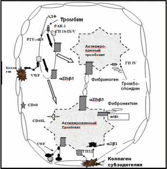 - •1.4.2.3. Активация тромбоцитов коллагеном