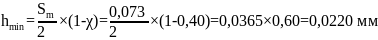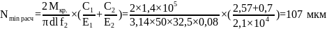 Nmin F = Nmin расч + U=0,107+0,020=0,127 мм
