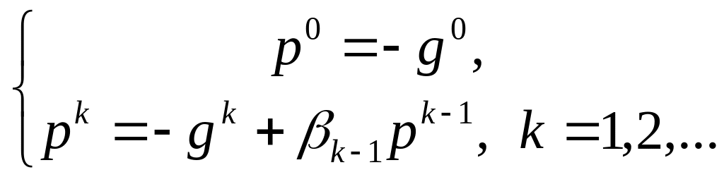 - •7.4.3.Основные соотношения метода сопряженных градиентов Флетчера-Ривса