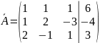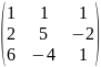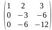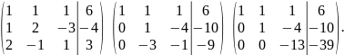 Додамо до другого рядка перший рядок, помножений на (-2), а до третього рядка перший рядок, помножений на (-6).