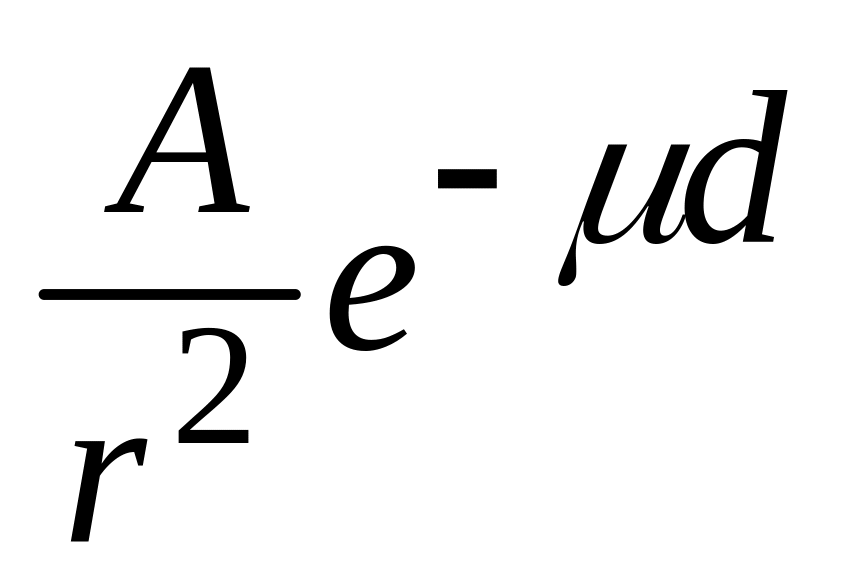 где К - ионизационная постоянная, r - расстояние от источника излучения, d - толщина защитного экрана, - коэффициент поглощения излучения в материале экрана.