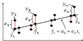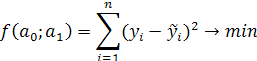 Основным методом решения задачи нахождения параметров а0 и а1 уравнения связи является метод наименьших квадратов (МНК), разработанный Гауссом. Он состоит в минимизации суммы квадратов отклонений фактических значений от значений, вычисленных по уравнению связи.