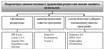 На практике для нахождения параметров множественной регрессии в связи с большим объемом расчетов прибегают к помощи ПЭВМ и специализированных пакетов программ: