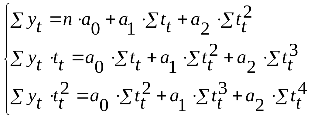 Для нахождения a0, a1 и а2 парабола второго порядка, соответственно необходимо решить систему: