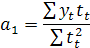 Для нахождения параметров линейного тренда (также как и в случае пространственных данных) используется МНК и решить систему нормальных уравнений:
