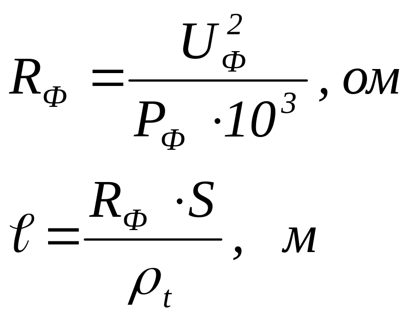 Зная электрическую мощность печи, напряжение питающей сети, можно рассчитать нагревательный элемент, т.е. его сечение и длину.