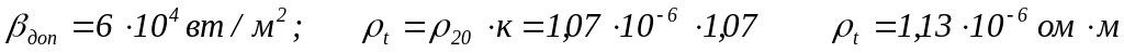 6. Выбираем диаметр и сечение провода НЭ из таблицы 1.6. Максимальная температура 6000С, d=2мм. S=3,14 мм2.