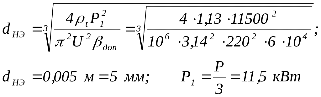 Формула удобна при выборе стандартных размеров диаметра или прямоугольного сечения НЭ.