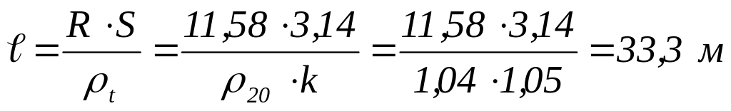 По силе тока НЭ и таблице 1.6 определяют сечение НЭ из нихромовой проволоки, а затем по ранее приведенным формулам и их длину ℓ.