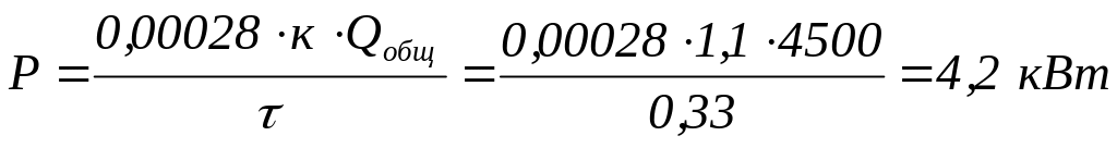 где к – коэффициент запаса (1,1 – 1,3), учитывающий уменьшение напряжения сети, старение НЭ, увеличение теплоемкости нагреваемого материала при повышении температуры.